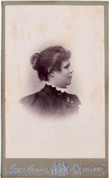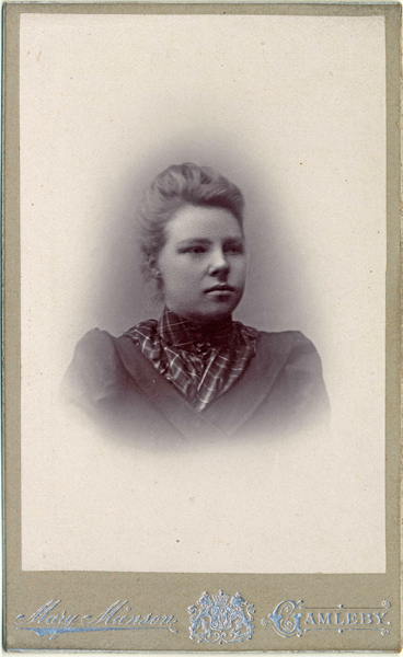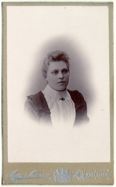 Sökord: ateljefoto ateljebild porträttfoto kabinettfoto kabinettbild visitfoto kabinettsfoto Mary Månsson, Gamleby