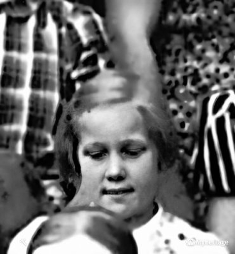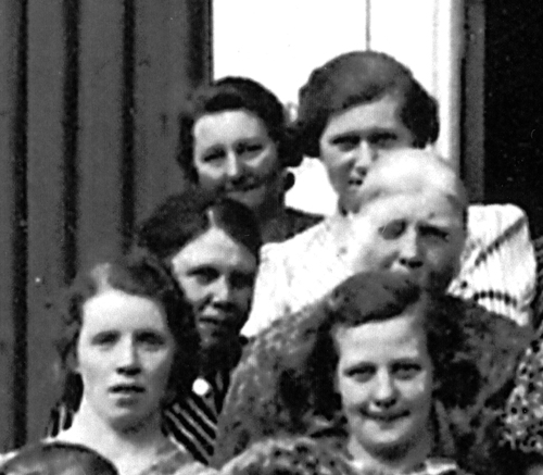 Bildtext: Symöte i Bredhultshaga ca 1943. Detta är en delvy av den kompletta bilden SPI021. 11(nedre vän). Lisa i Solliden (senare Stenås) 12(mitten vän). Mia i Gröningstorp 13(övre vän). Hele Johansson i Torpa som körde ut posten m cykel Karrum Ringsfall Odensvi t o r 14(övre hög). Maja Nilsson, Enströmstorp 15(mitten hög). Josefina i Kvickhult 16(nedre hög). Gulli i Bredhulthaga. Nr11. Lisa Maria Jakobsson f 21/10 1912 Nr12. Osäker men det kan vara Anna Maria Herzog Gröningstorp f 26/12 1882 i Dalhem, Anna Maria Fredriksson död 9/7 1973 på ålderdomshemmet. Nr13. Helga Teresia Karlsson, Ludvigsborg f 15/6 1900 i Locknevi, Helga Teresia Johansson död 29/11 1977 i Gamleby Nr14. Eva Alfhild Maria (Maja) Bring f 7/4 1909 i Hallingeberg, Nr15. Mathilda Josefina Persdotter, Kvickhult f 7/5 1872 i Lilla Skälhem, Änkan Matilda Josefina Månsson flyttar till Heda i Gamleby och dör 26/12 1955. Nr16. Gurli Hulda Ingegärd Andersson f 20/2 1921.