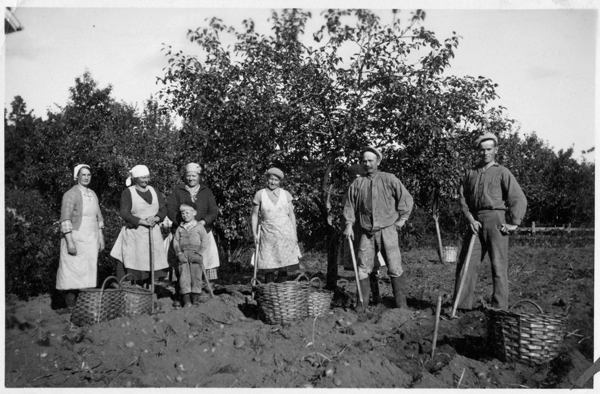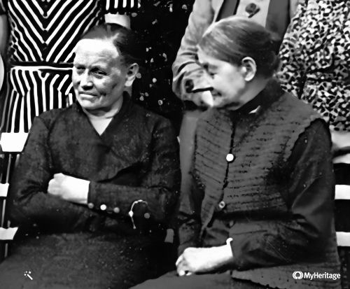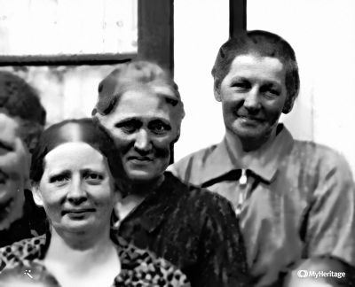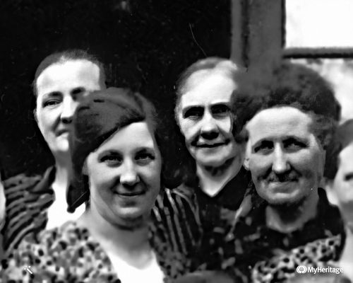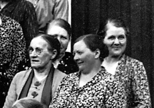 Bildtext: Symöte i Bredhultshaga ca 1943. Detta är en delvy av den kompletta bilden SPI021. 29. Emma i Torpa, Fridhem 30. Mina Andersson i Torpa, Karlsborg (Kristina Wilhelmina Johansdotter f 4/8 1863 i Blåskulla)