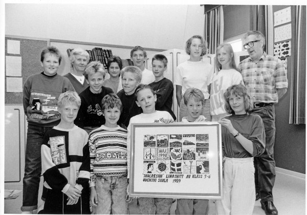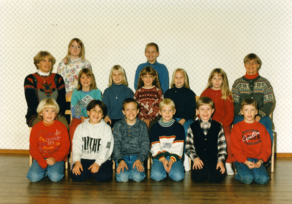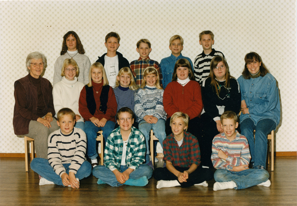 Bildtext: Klassfoto från Odensvi skola på 1990-talet med lärarna Kerstin Wester och Ann-Sofie Pettersson. Bakre raden från vänster: Linda Jakobsson, Anders Frithioff, Hugo Zeilon, Marcus Augustini, Björn Forsling.