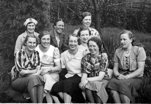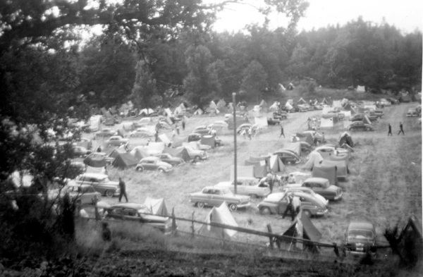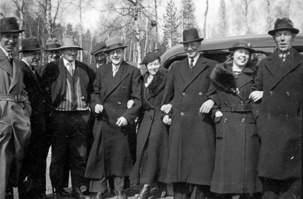 Bildtext: En samling människor vid en bil utanför Bockrödsle. 4:a från vänster syns Axel Kling, 5:a är Erik Andersson, Strömstad (bror till Edit), Nr 8:a Einar Nilsson, Möckelhult och 9:a är Edit Andersson.