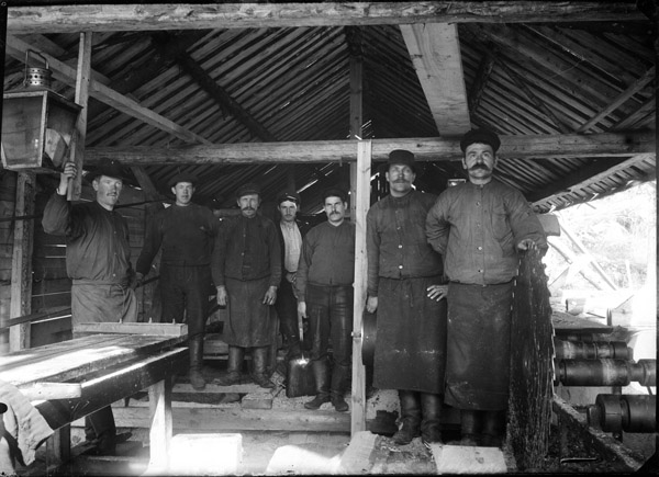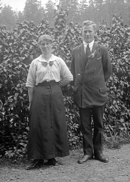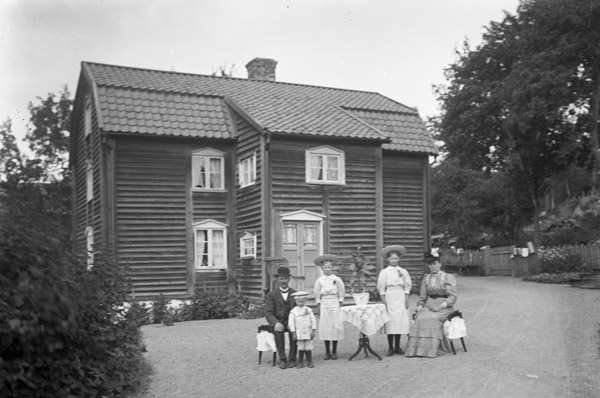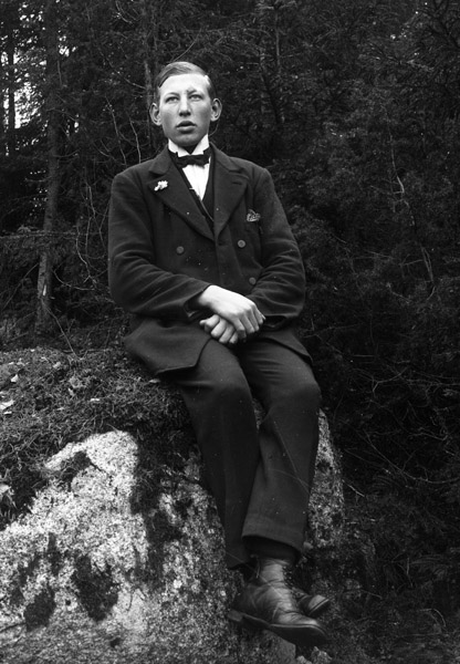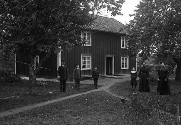 Bildtext: Sju eleganta herrar. F.v. 1. okänd, 2. Folke i Udden, 3. okänd, 4. Hjalmar Bergström i Skälsgrind, 5. John Svensson, 6. Verner i Högsby, 7. Karl Bergström i Skälsgrind.