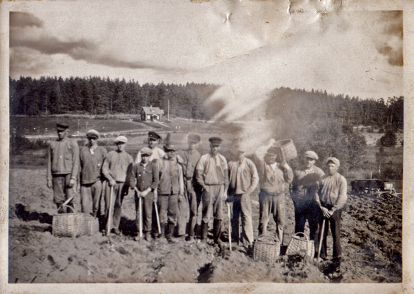 Efter vigseln flyttar de till Ölvinge där deras första barn föds, Edit, som står till höger om Oskar på trappan. Bredvid Edit står Rut, och sedan Gerda.