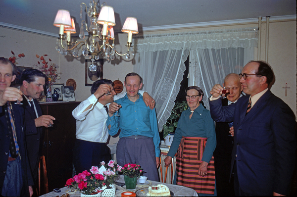 Bildtext: Sigvards Gustavssons nya bil, en Audi (Skälhemslyckan). // Bilen är en Audi 80 i sin första version, B1, som kom 1972 och kvarstod fram till 1978 då en ny version introducerades. 1977 fick den dock fyrkantiga strålkastare. 4-cyl längsmonterad motor av ett par olika storlekar, framhjulsdriven. Från 1974 presenterade VW Passat, baserad på samma bottenplatta och maskineri.