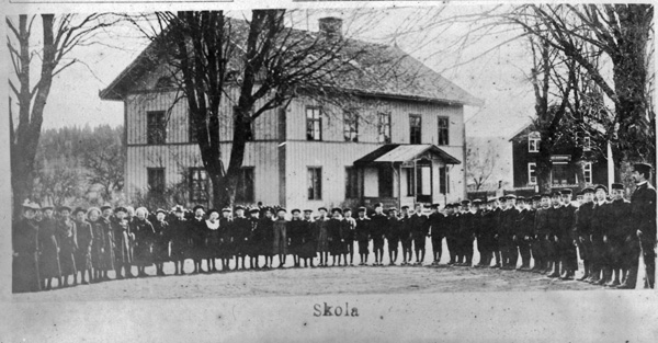 Sittande okänd, Esa Paakkulainen Karrum, Sven Johansson, Ludvigsborg, Torpa, samt ett antal smågrabbar från Grindbo