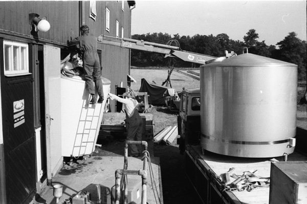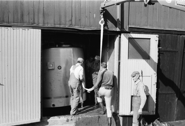 Bildtext: Ny mjölktank på 5000 liter ska ersätta den gamla på 4000 liter i Ogestad ladugård 790830
