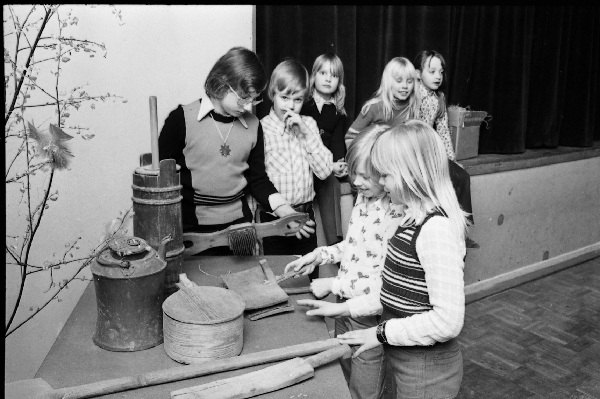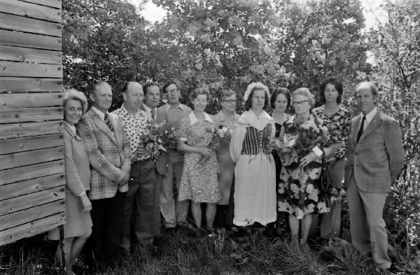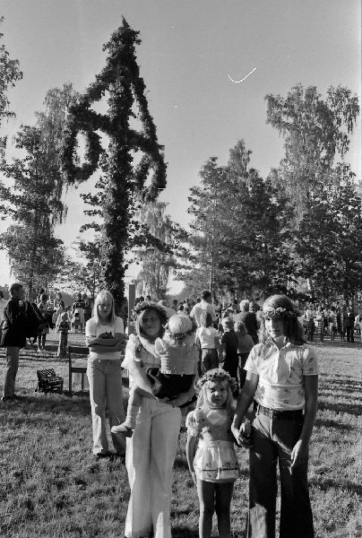 Bildtext: Skolavslutning i Odensvi skola 1975. Personerna är fr vänster: Marianne Mårtensson, Rune Karlsson, Lennart