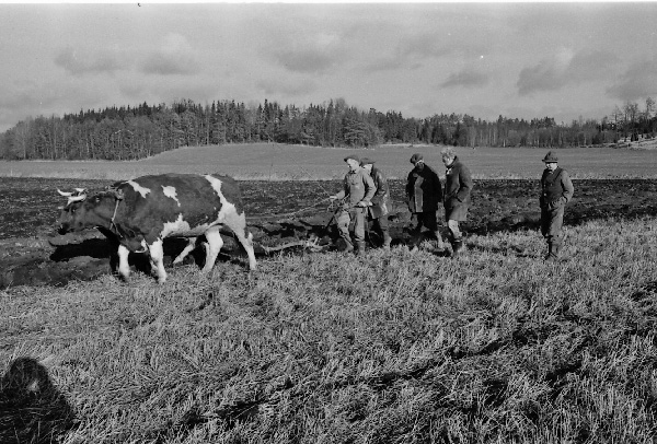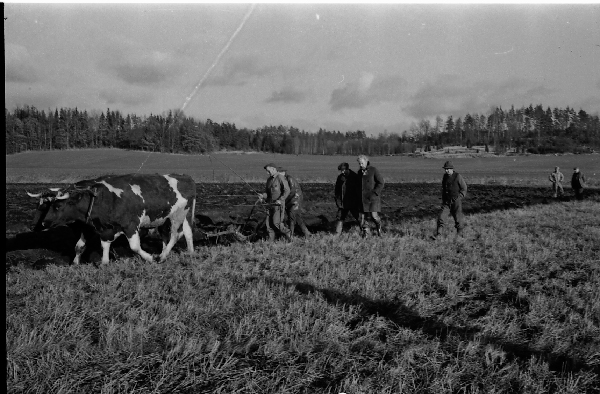 Bildtext: Troligen studiecirkel i Odenskans. Okänd, Olle Svensson Odensviholm, Alrik Johansson Boda, Torsten Karlsson Snärsfall, Bertil Arvidsson Västrabro, Torgny Johansson Mulestad, Okänd, Okänd, Bosse Johansson Löta, Paul Jonsson och Göran Svensson, Odensviholm.