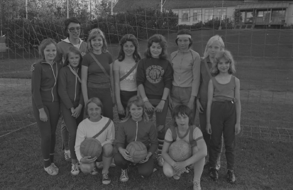 Bildtext: Odensvi flicklag. ?, Ingrid Nilsson, Gunilla Johansson, Lena Andersson, Karin Andersson, Laila Dahlbom, ? , Gunilla Andersson. Sittande Marie Blomberg, ? , Anette Thuresson.