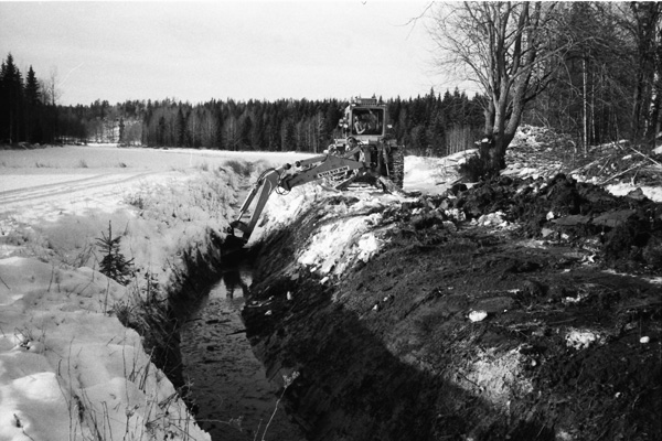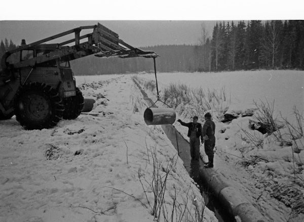 Bildtext: Dikesrensning stordiket på Ekkärret, Ogestad 840117