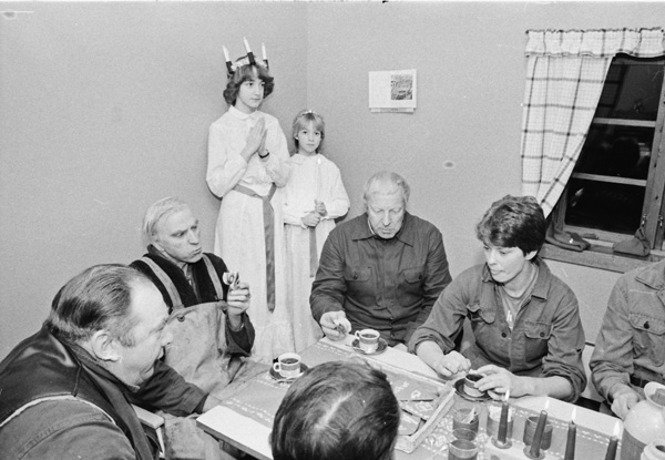 Sökord: luciafirande tärna kaffekoppar saffransbröd luciakrona Motivkategori:kyrkligt Id:7166 Fotograf: Carl-Axel Bröme Fotoår: 1981 Bildnummer: CB7130 Förening: Odensvi hembygdsförening Land: SE Motivplats: Kalmar, Västervik, Odensvi, Ogestad Teknik: Skannat sv/v negativ Rättighet: Originalplats: (visas ej publikt)