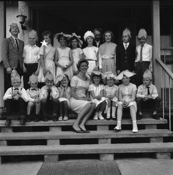 Sökord: blombukett fröken lärarinna skolbarn kyrkligt Maja Hanzon Maria Hansson skolavslutning Motivkategori:skola Id:1959 Fotograf: Carl-Erik Carlsson Fotoår: Troligen 1960 -1965 Bildnummer: cal495 Förening: Odensvi hembygdsförening Land: SE Motivplats: Kalmar län, Västervik, Odensvi, kykan Teknik: Skannat negativ Rättighet: Odensvi hembygdsförening Originalplats: (visas ej publikt)