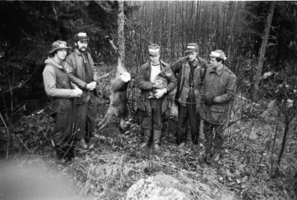 Sittande är från vänster fru Ingrid Hertzog (död aug 1980), Rudolf Månsson (död juni 1980), Elna Nilsson, Axel Karlsson(f 18/10 1894 Odensvi, d 16/6 1980 Gamleby), okänd, Alva Karlson.