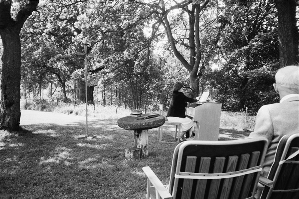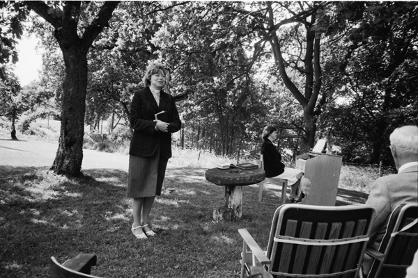 Bildtext: Gudstjänst midsommardagen 830625 Lars-Otto Bröme, Birgitta Nilsson.
