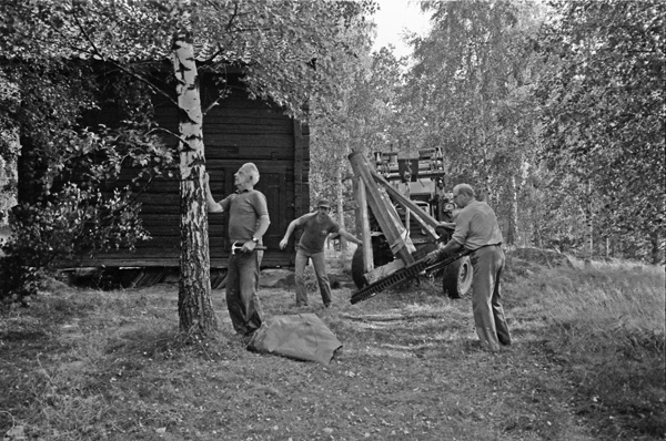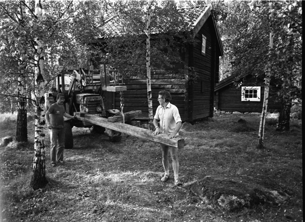 Bildtext: Oxvandringen kommer från Uppsala till hembygdsparken. 830831. Vilka är personerna?
