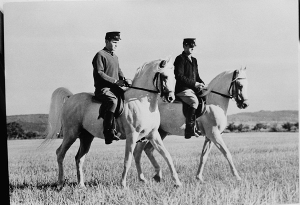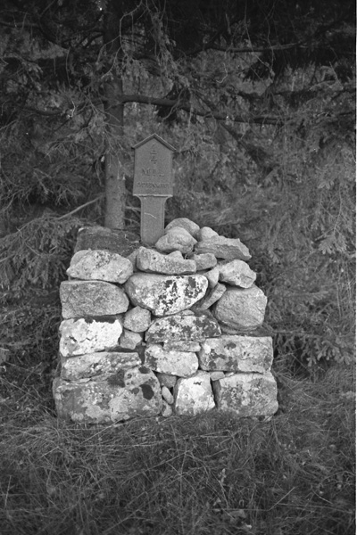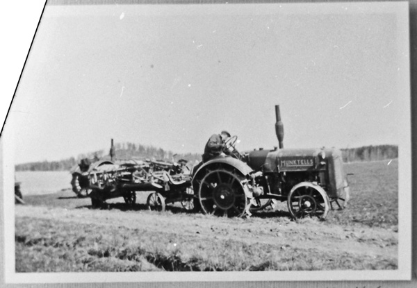 Bildtext: Häst och vagn, Sörbygärdet mellan Frö och Ogestad. I mitten syns Carl Pettersson, ladugårdskarl på Ogestad.