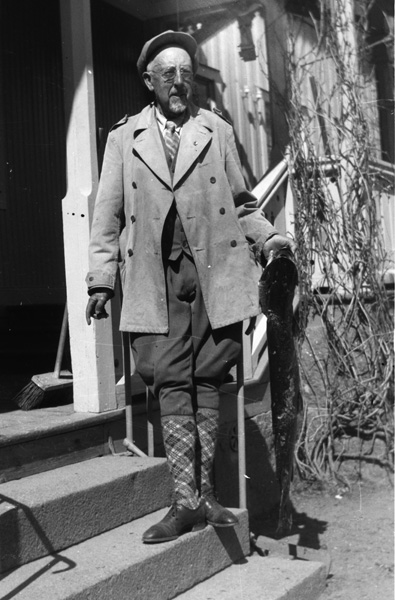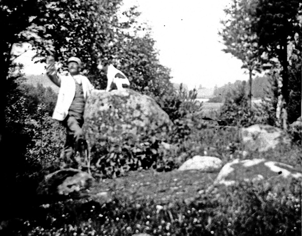 Bildtext: Bild från Ogestad. En man i knäbyxor med en riktig präktig gädda. Vet någon mer ? Kan det vara Axel Liljenstolpe på äldre dar ?