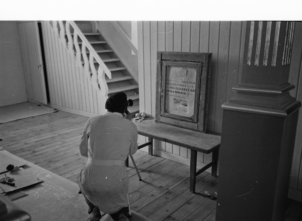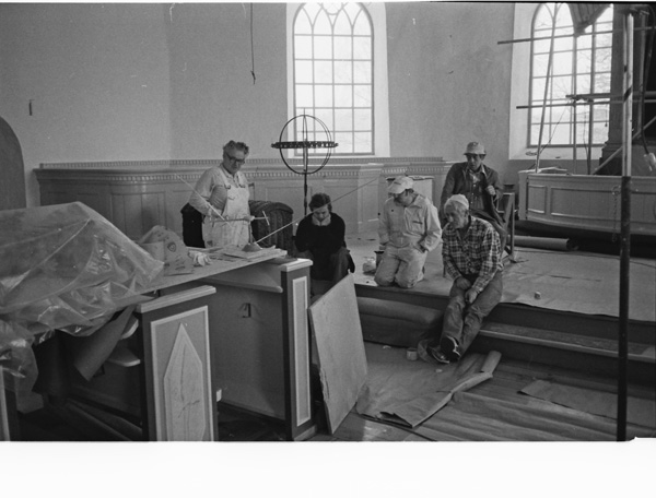 Sökord: renovering reparation målning målare tavla dokumentation föremål Motivkategori:kyrkligt Id:2314 Fotograf: Carl-Axel Bröme Fotoår: 1984 Bildnummer: CB1847 Förening: Odensvi hembygdsförening Land: SE Motivplats: Kalmar, Västervik, Odensvi, kyrkan Teknik: Scannat negativ Rättighet: Originalplats: (visas ej publikt)