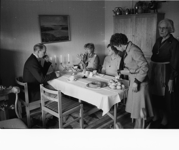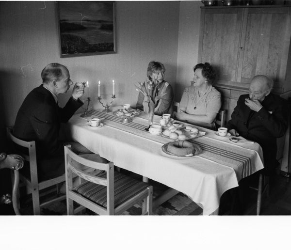 Sökord: kaffe fika kalas sterinljus Motivkategori:personer Id:2323 Fotograf: Carl-Axel Bröme Fotoår: 1984 Bildnummer: CB1922 Förening: Odensvi hembygdsförening Land: SE Motivplats: Kalmar, Västervik, Odensvi, Teknik: Scannat negativ Rättighet: Originalplats: (visas ej publikt)