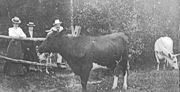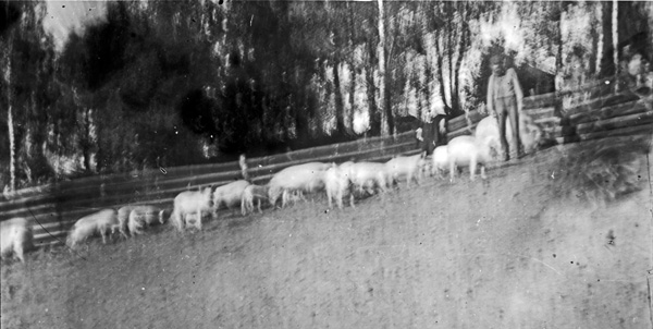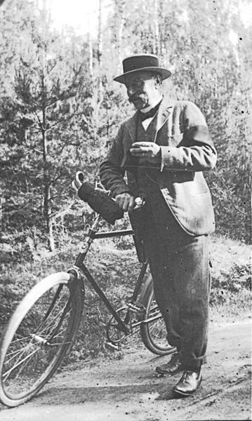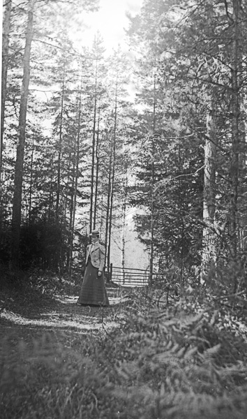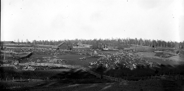 Bildtext: Bilden är taget strax bakom Blåskulla och det hus som syns är Perstorp. Detta var det stora huset och strax innanför fanns en mindre backstuga. Huset brann ned 1912 och detta är det enda kända fotot av huset. Mannen är Axel eller Erik Liljenstolpe, Ogestad.