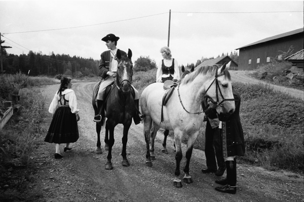 När huset är på plats blir det en fika paus i parken. Einar och Karin i Mulestad samt Elsa och Henrik.
