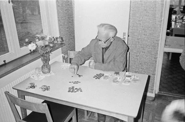 Sökord: försäljning kassa pengar kassaskrin Motivkategori:handel Id:2580 Fotograf: Carl-Axel Bröme Fotoår: 1984 Bildnummer: CB2176 Förening: Odensvi hembygdsförening Land: SE Motivplats: Kalmar, Västervik, Odensvi, Odenskans Teknik: Scannat negativ Rättighet: Originalplats: (visas ej publikt)