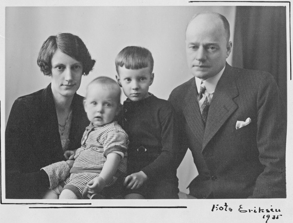 Bildtext: Familjen Bröme i Ogestad. Gunvor Bröme, Lars-Otto Bröme, Carl-Axel Bröme, Ruben Bröme