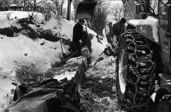 Bildtext: Bild från demostrationen av Odensvibor vid Älmkärr den 16/9 1977 för en bättre väg 135. Bl.a, syns Olhede från vägverket, landshövding Erik Westerlind, Kalmar och vägverkets direktör Samuelsson från Kalmar.
