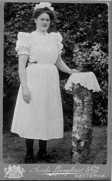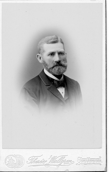 Bildtext: Porträtt på ett par, mannen med en stilig mustasch. Bild hämtad i ett äldre fotoalbum från Ogestad. Helmi och Joel af Ekenstam. Joel dog 20/5 1945 och var född 6/8 1871 i Västra Ed. Hustrun HELMI Lucia Fredrik Bremberg f.22/4 1878, d.11/10 1962, gifta 18/6 1903.