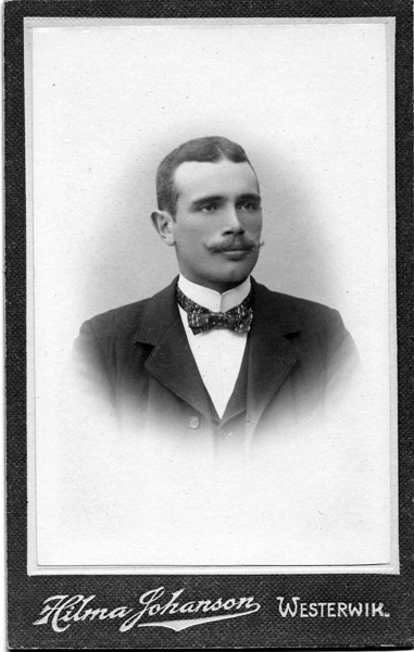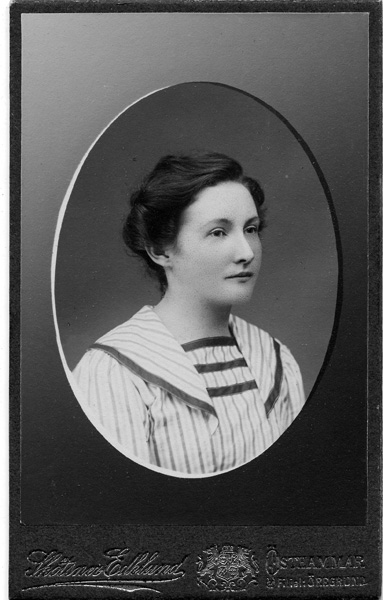 Bildtext: Porträtt på ett brudpar. Bild hämtad i ett äldre fotoalbum från Ogestad. Porträtt på ett brudpar. Bild hämtad i ett äldre fotoalbum från Ogestad. Giftemål den 15 april 1911 Sankt Olai, Norrköping mellan Matilda Charlotta Björklund född 24 jun 1887 i Gamleby och Karl Axel Waldemar Andersson född 13 maj 1880 i Odensvi. Paret bosatte sig i Norrköping och fick en dotter, Karin Margareta född 3 maj 1916 i Olai församling. Se även HF 081, HF085, HF088.