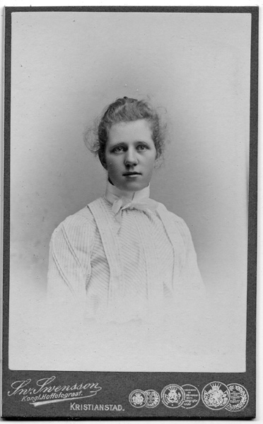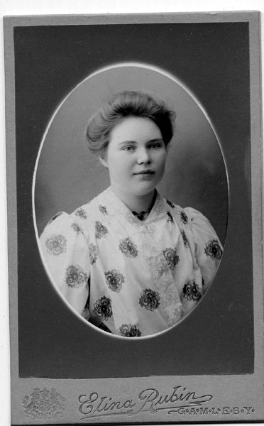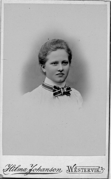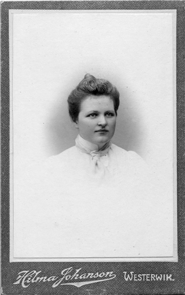 Bildtext: ELLEN Elvira Gabrielsson, född Jonsson 6/11 1883 i Stora Skälhem, Odensvi, Kalmar län.