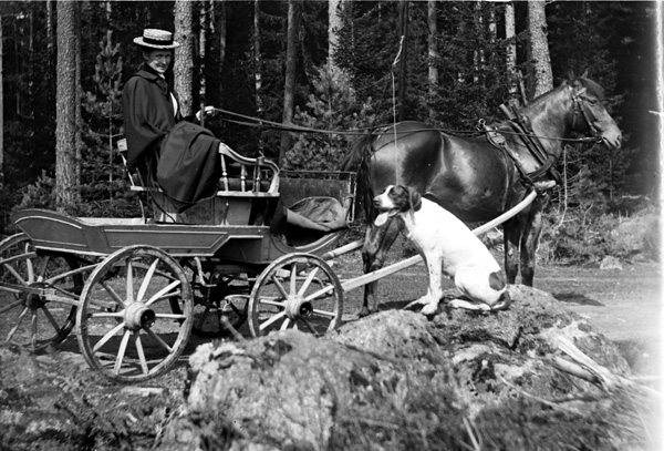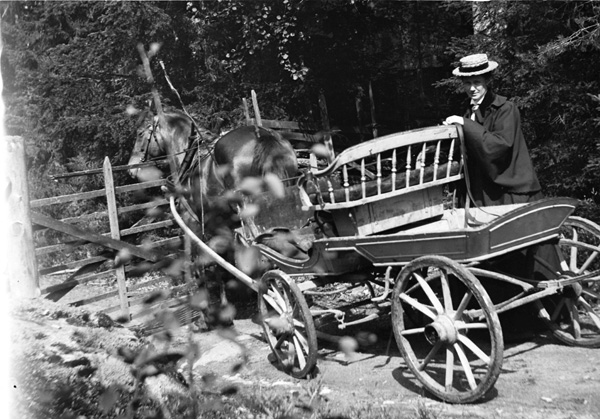 Bildtext: Mia Liljenstolpe, Ogestad, med häst och vagn (och hund)