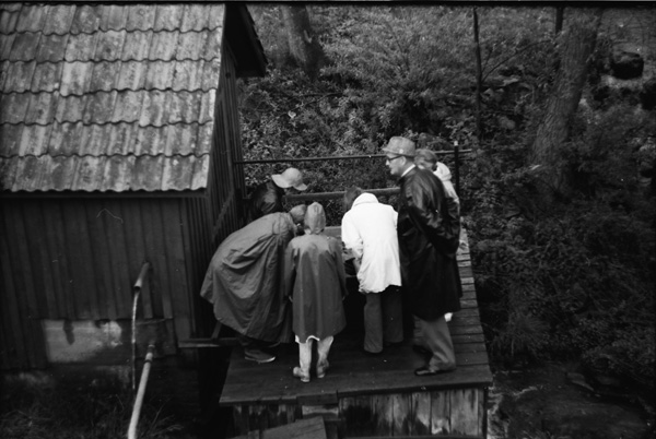 Bildtext: Blekhem gåddyngelrum. Fiskstudiecirkel från Odensvi på studiebesök 750500