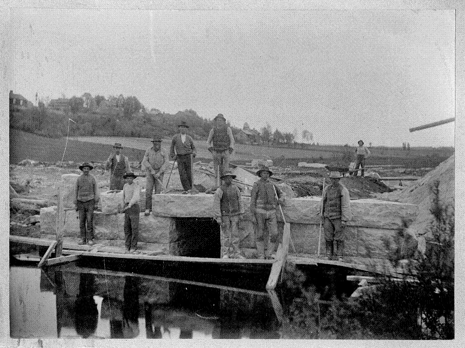 Bildtext: Virkesmätning vid Ogestad såg ca 1950.