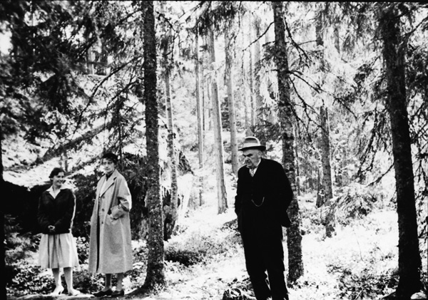 Bildtext: Ingrid-Märta Bröme, Gunvor Bröme och Ernst Karlsson vid Hängesten 1958