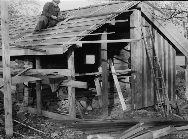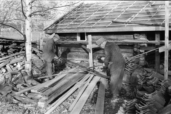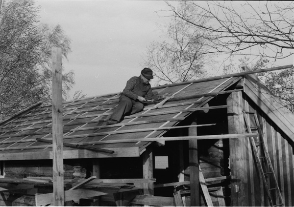 Sökord: bygge renovering timrad timring Blosekolle Kalle Uleaus snickare Motivkategori:hus Id:3212 Fotograf: Carl-Axel Bröme Fotoår: 1975 Bildnummer: CB2888 Förening: Odensvi hembygdsförening Land: SE Motivplats: Kalmar, Västervik, Odensvi, hembygdsparken Teknik: Skannat svartvitt foto Rättighet: Originalplats: (visas ej publikt)