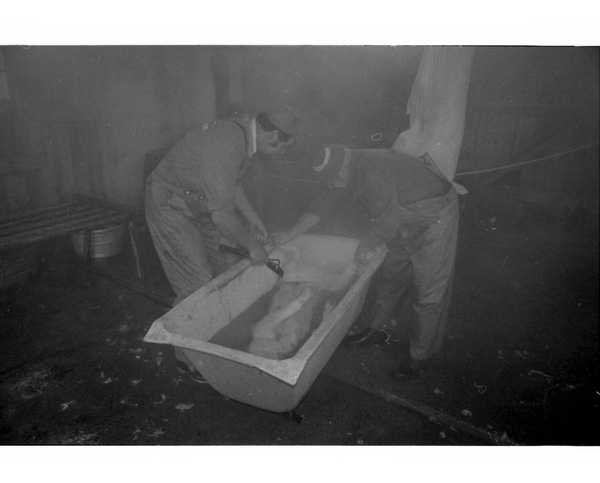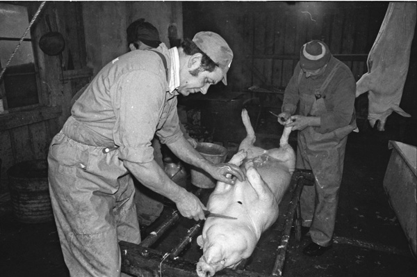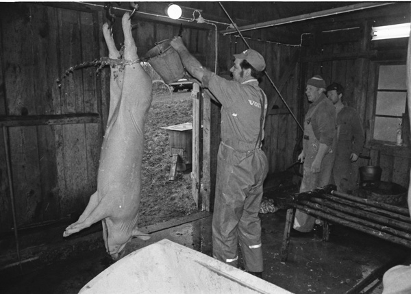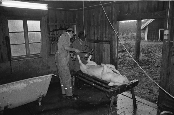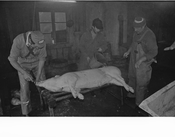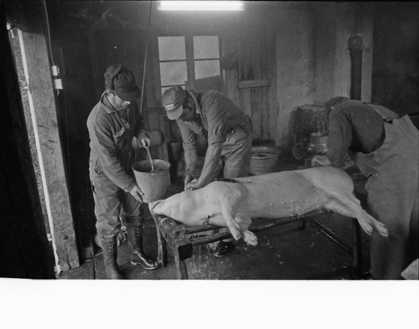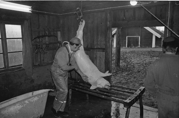 Sökord: gris slakt kött fläsk slaktare kärra Motivkategori:jordbruk Id:2691 Fotograf: Carl-Axel Bröme Fotoår: 1984 Bildnummer: CB2344 Förening: Odensvi hembygdsförening Land: SE Motivplats: Kalmar, Västervik, Odensvi, Ogestad Teknik: Scannat negativ Rättighet: Originalplats: (visas ej publikt)