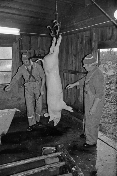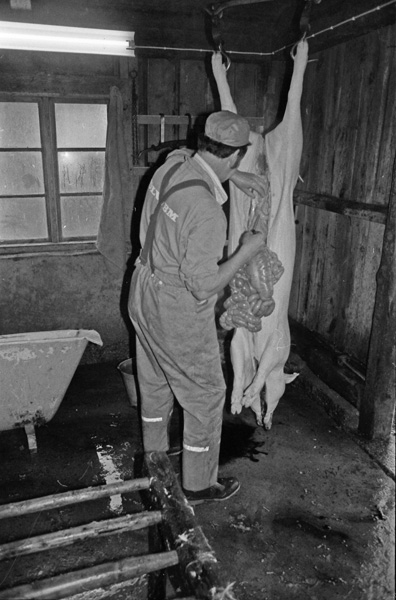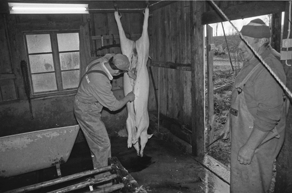 Sökord: gris slakt kött fläsk slaktare kärra kniv hink Motivkategori:jordbruk Id:2701 Fotograf: Carl-Axel Bröme Fotoår: 1984 Bildnummer: CB2358 Förening: Odensvi hembygdsförening Land: SE Motivplats: Kalmar, Västervik, Odensvi, Ogestad Teknik: Scannat negativ Rättighet: Originalplats: (visas ej publikt)