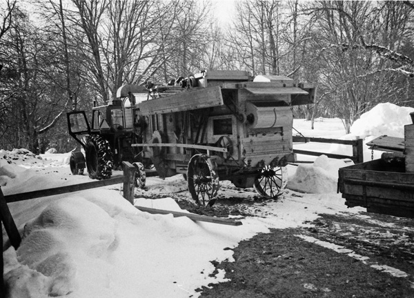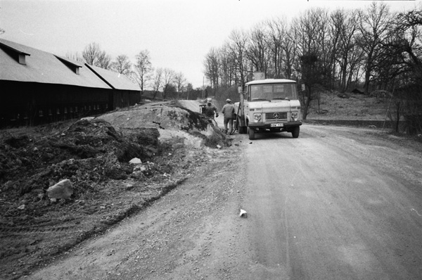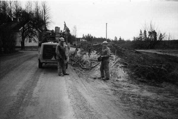 Bildtext: Grisslakt Ogestad 841129. Urtagning. Nils Karlsson, Ogestad, Henning Karlsson, Gällerstorp