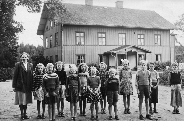 Bildtext: Gamla skolan i Odensvi 1948.