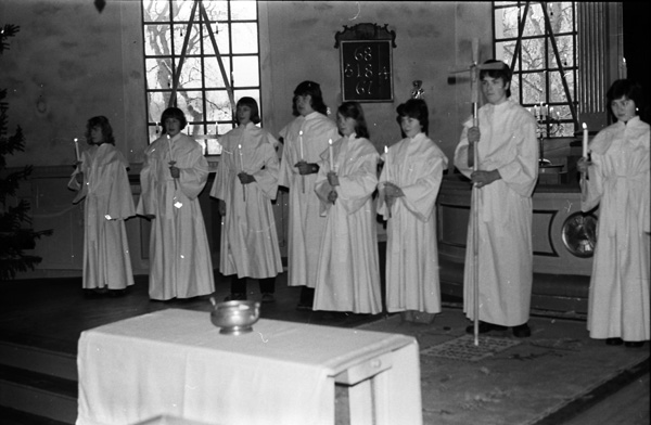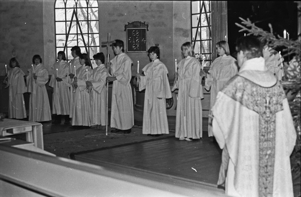 Sökord: konfirmation konfirmander kors stearinljus kyrka Motivkategori:kyrkligt Id:3806 Fotograf: Carl-Axel Bröme Fotoår: 1977 Bildnummer: CB3555 Förening: Odensvi hembygdsförening Land: SE Motivplats: Kalmar, Västervik, Odensvi, kyrkan Teknik: Skannat sv/v negativ Rättighet: Originalplats: (visas ej publikt)