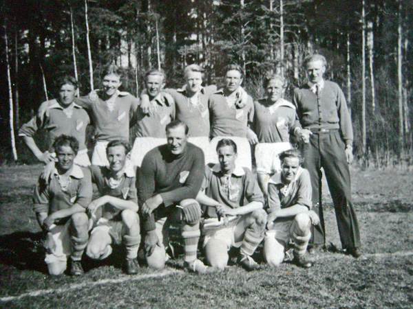 Spelarna är knästående Hannu Alho, Sölve Eriksson, John Nilsson, Arne Sääv, Holger Karlsson.