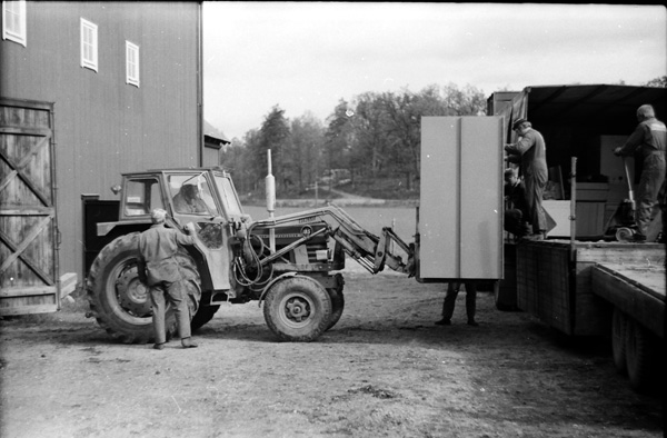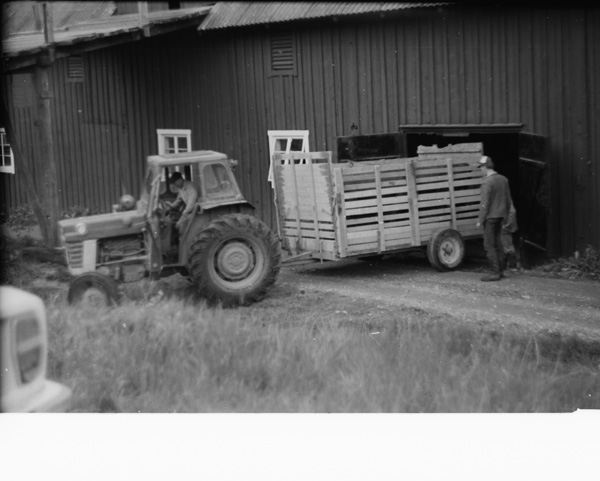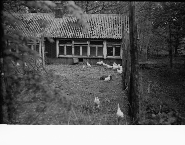 Bildtext: Hönsen vid Eka hönshus. Ogestad, Maj 1975.