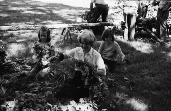 Bildtext: Midsommarstången klädes Lotta Mårtennson, Marianne Mårtensson m.fl. 770624
