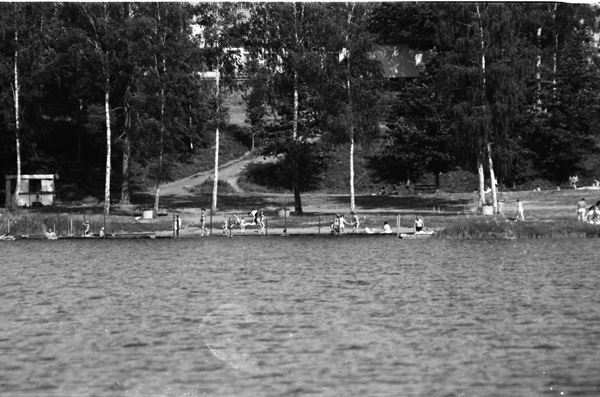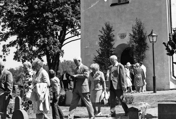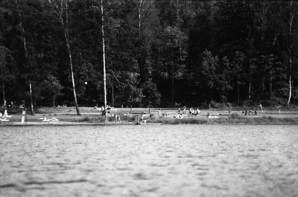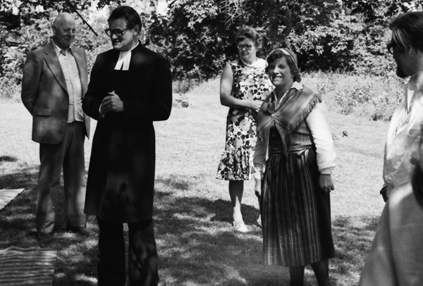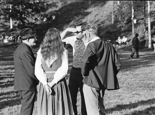 Bildtext: Midsommar vid Kyrksjön 770624. Sällkvist, Viola Olsson, Alvar Jakobsson.