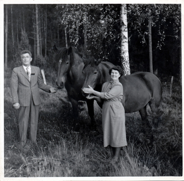 Bildtext: Ett par finklädda hos två fina Nordsvenska hästar.