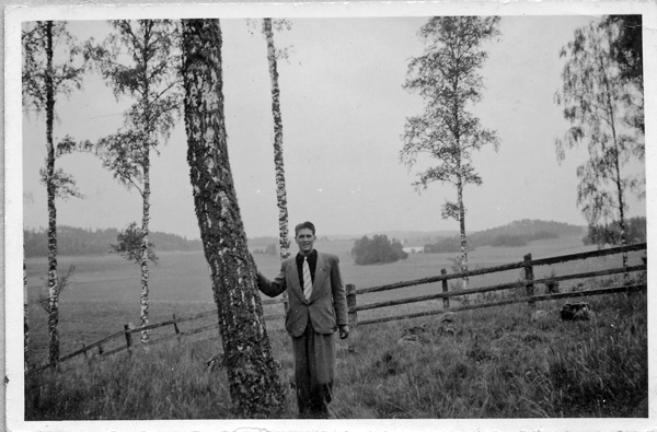 Bildtext: Bilden är tagen vid Blåskulla med Möckelkullen i bakgrunden. Mannen är Eric Andersson, som var smed på Ogestad i 40 år. Det är min far.
