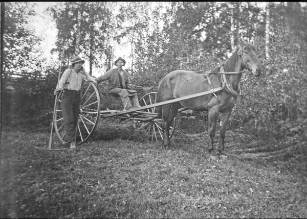 Bildtext: En fin bil i Mulestad. Orlander sitter i droskan, Alva Nilsson och Sara Andersson (kusin med Iris i Tuna. // Bilen är en Essex Super Six, årsmodell 1928 eller 1929. Det tämligen exklusiva bilmärket Hudson hade först lanserat Essex som en billigare 4-cylindrig version men senare försett den med en 6-cylindrig sidventilmotor som gjorde Essex populär i USA och Hudsongruppen till en betydande biltillverkare där, men Essex kom även till Sverige.
