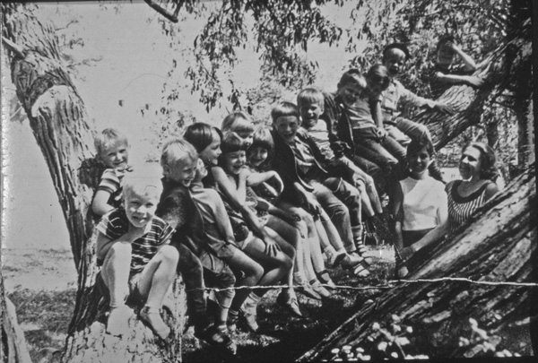 Bildtext: Fröken Karlberg, Erik o Tore Reinholdsson i Silo, Mulestad.