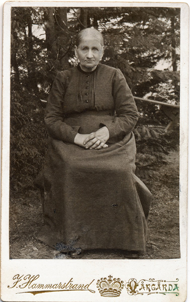 Sökord: porträtt äldre gammal tant Motivkategori:kvinnor Id:7977 Fotograf: H Hammarstrand, Vårgårda Fotoår: ca 1940 Bildnummer: Setk109 Förening: Odensvi hembygdsförening Land: SE Motivplats: Kalmar, Västervik, Odensvi, Ringsfall Teknik: Skannat sv/v foto Rättighet: Originalplats: (visas ej publikt)